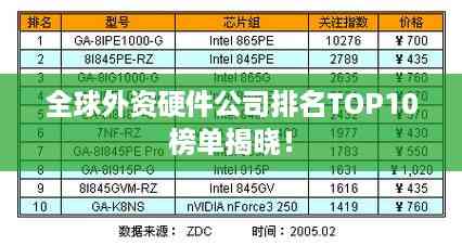 随着科技的飞速发展,硬件产业在全球范围内呈现出蓬勃生机,外资硬件公司在技术创新、产品研发、市场拓展等方面扮演着重要角色,本文为您带来全球外资硬件公司排名前十名的介绍。